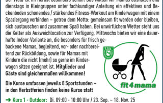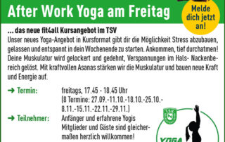 Außerdem bieten wir für Mitglieder und Gäste unter fit4all ein attraktives Kursangebot, bei dem Yoga, Nordic Walking, fit4mama, fit4you und Outdoor-Fitness belegt werden können.